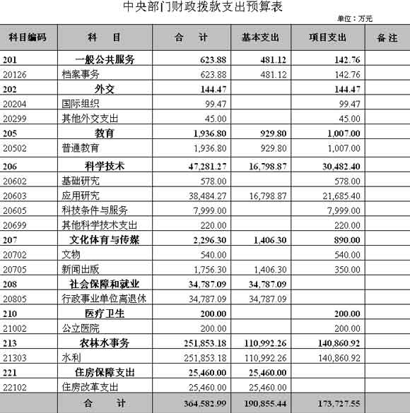 水利部2010年財政撥款支出預(yù)算表