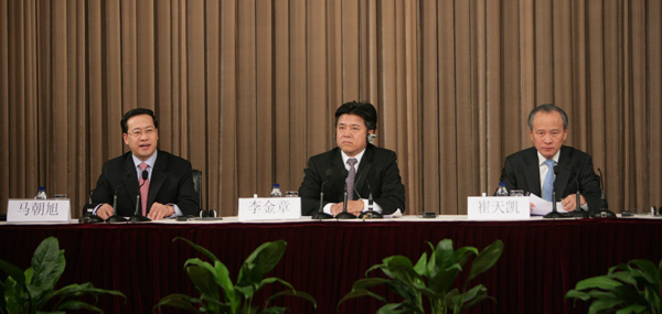 李金章、崔天凱還回答了記者提問。外交部新聞司司長馬朝旭主持吹風會。中外記者100余人出席。