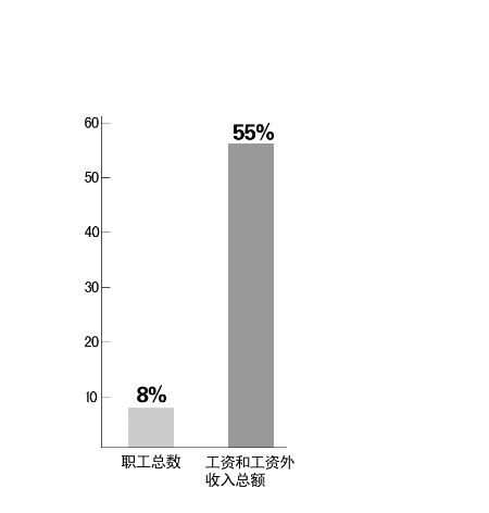 ——在行業企業內部,工資、福利向少數人集中的趨勢正不斷加強。2008年全國國有及國有控股企業財務決算反映,當年央企人均福利費支出為3387元,其中最高的為4.46萬元,最低的為149元,相差近300倍。