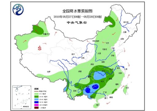 27日08時至28日08時,新疆西部、西藏東南部、川西高原等地有小到中雪(雨)或雨夾雪;甘肅南部、陜西中南部、內蒙古中東部、華北、黃淮大部、江淮大部、江漢、江南大部、華南、西南地區有小到中雨或陣雨,其中,湖北西南部、湖南西部和北部、貴州南部、廣西中西部以及云南西部等地的部分地區有大雨,局部有暴雨,上述部分地區并伴有短時雷雨大風或冰雹等強對流天氣。新疆、內蒙古大部、華北北部、東北西部有4~5級風,新疆山口地區有7~8級風;南疆盆地的部分地區有揚沙或浮塵天氣。南海東北部海域將有西南風6~7級、陣風8級轉5~6級、陣風7級。