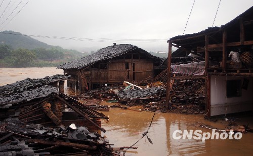 6月20日,福建建陽持續暴雨引發洪水沖毀民房。自13日以來,福建各地持續發生暴雨到特大暴雨,引發了嚴重的滑坡、泥石流等地質災害,造成鐵路塌方,交通受阻,電力、通信、供水中斷,帶來人員傷亡和經濟損失。 中新社發 王柳珍 攝