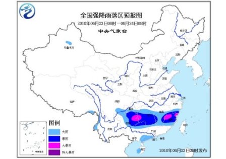中央氣象臺(tái)今日06時(shí)繼續(xù)發(fā)布暴雨藍(lán)色預(yù)警:預(yù)計(jì)6月23日08時(shí)到6月24日08時(shí),四川盆地南部、重慶南部、貴州中東部、湖南大部、江西中南部、浙江南部、福建大部、廣西北部和東南部等地有大到暴雨,局地有大暴雨;上述部分地區(qū)并伴有短時(shí)雷雨大風(fēng)等強(qiáng)對(duì)流天氣。另外,新疆天山北麓、西藏東南部、云南西部、廣東西南部和西北部、海南西部等地的局部地區(qū)有大雨。