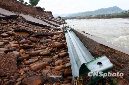 6月23日清晨,被水沖毀路段現場。近日,浙西暴雨導致浙江衢州市柯城區石呈線1Km 400m處發生塌方。目前,被沖毀的路段有40多米,路基150米,車輛和行人已無法通行。 中新社發 江瀛 攝