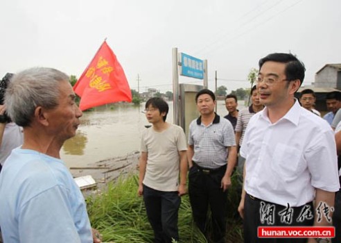 6月24日,湖南省委書記周強在湘潭市雨湖區(qū)楊梅洲向守堤群眾了解防汛準(zhǔn)備情況。 記者 張目 攝