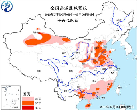 中央氣象臺7月5日18時(shí)繼續(xù)發(fā)布高溫黃色預(yù)警: