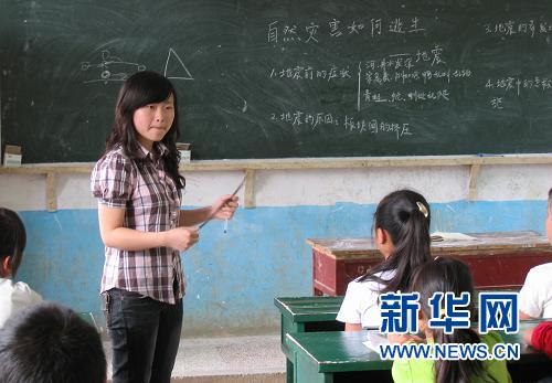遇難前一天,支教大學生趙小亭在給貴定縣馬場河鄉中心小學的學生上課(7月20日攝)。 新華社發