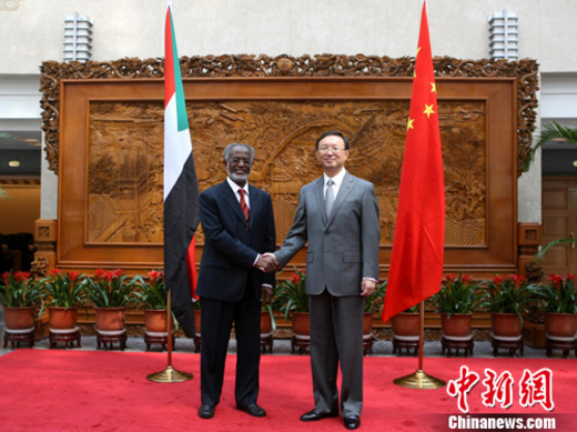 中國外交部長楊潔篪14日在北京與來訪的蘇丹外交部長卡爾提舉行會談,雙方就兩國關系和共同關心的問題深入交換意見。
