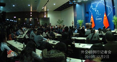 2010年12月2日,外交部發(fā)言人姜瑜主持例行記者會(huì)。