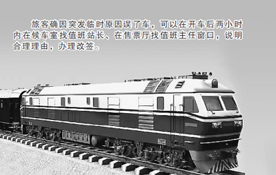 因突發臨時原因誤車,可在開車后兩小時內找值班站長改簽