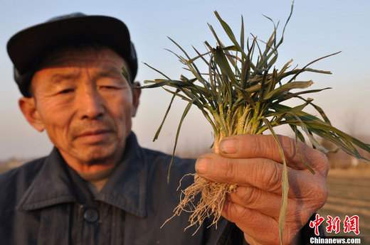 去年10月以來(lái),北方冬麥區(qū)降水持續(xù)偏少,山東、河北等部分地區(qū)至今已連續(xù)3個(gè)多月無(wú)有效降水,河北、山西、江蘇、安徽、山東、河南、陜西、甘肅八省部分地區(qū)旱象露頭并持續(xù)發(fā)展。據(jù)農(nóng)業(yè)部農(nóng)情調(diào)度,截至2月4日,八省冬小麥?zhǔn)芎?611萬(wàn)畝,占八省冬小麥種植面積的35.1%,占八省耕地面積的21.7%,受旱八省冬小麥面積和產(chǎn)量均占全國(guó)的八成以上。