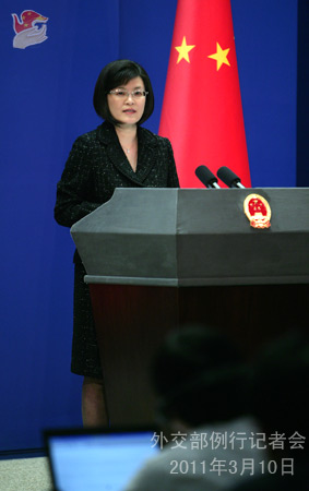 2011年3月10日,外交部發言人姜瑜主持例行記者會。