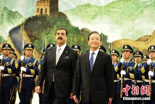 5月18日,中國國務院總理溫家寶在北京人民大會堂舉行儀式歡迎巴基斯坦總理吉拉尼訪華。中新社發 廖攀 攝