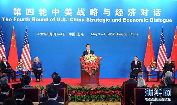 5月3日,國家主席胡錦濤在北京出席第四輪中美戰略與經濟對話開幕式并致辭。 新華社記者 謝環馳 攝
