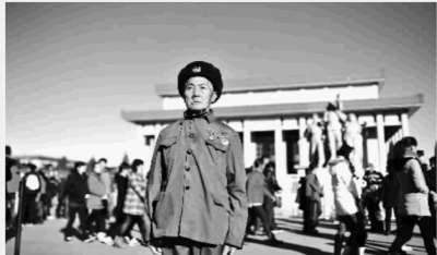 11月17日上午,83歲老兵奉孝同在毛主席紀念堂緬懷后,在天安門廣場向天安門城樓敬禮。記者 童迪 攝