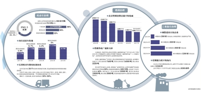 此外,改善車用油品質量、強化在用車排放監管體系、重點整治貨運車輛的機動車排放執法、夜查大貨車以及淘汰黃標車等,都是北京近幾年采取的治理機動車排放措施。