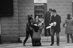 3人在監獄大門口哭成一團 本版圖片均據《京華時報》