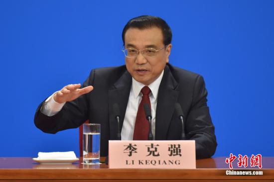 3月16日上午,國務院總理李克強在人民大會堂三樓金色大廳會見采訪十二屆全國人大四次會議的中外記者,并回答記者提出的問題。中新社記者 金碩 攝