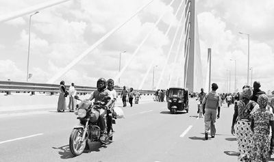 達累斯薩拉姆居民紛紛走上大橋,體驗發(fā)展帶來的便利。