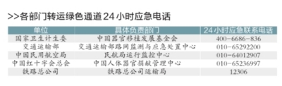 據介紹,《通知》要求建立人體捐獻器官轉運綠色通道的工作機制。國家衛計委會同公安部、交通運輸部、民航局、鐵路總公司、中國紅十字會總會等有關部門和單位建立協調機制,設立器官轉運綠色通道24小時應急電話。
