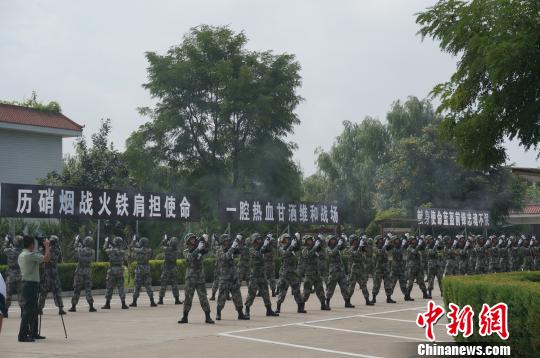 維和李磊、楊樹朋烈士遺體告別儀式在其部隊駐地河南許昌舉行。 韓章云 攝