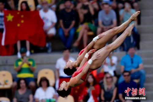 2016里約奧運跳水女子雙人十米臺,中國選手陳若琳、劉惠瑕奪冠。中新網(wǎng)記者 杜洋 攝