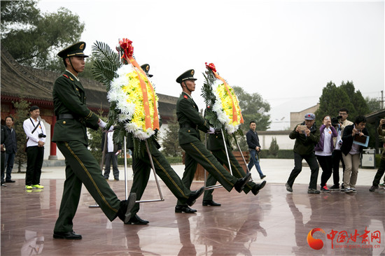 上午9時40分,敬獻花籃儀式正式開始。中央網(wǎng)信辦傳播局副局長唐建軍,平?jīng)鍪形N⑿麄鞑坎块L曹復(fù)興上前為花籃扶正緞帶,隨后全體人員為革命先輩行三鞠躬禮。儀式結(jié)束后,采訪團參觀了解了毛澤東故居、紅軍樓、神馬救駕等展廳。