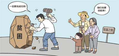 駐村扶貧干部想要帶領群眾脫貧致富的迫切心情可以理解。但是過分追求短期內出成績、比成效,就很容易讓脫貧攻堅走偏。這種攀比心態在一些群眾中間也存在,每當發一些扶貧物品,就會有一些群眾相互“攀比”,出現爭窮比窮、“躺著當低保戶”的現象。