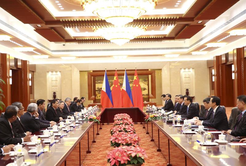 國務院總理李克強20日下午在人民大會堂會見來華進行國事訪問的菲律賓總統杜特爾特。