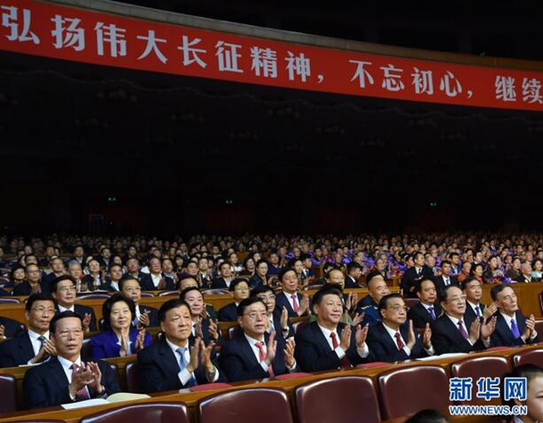 2016年10月19日,紀念紅軍長征勝利80周年文藝晚會《永遠的長征》在北京人民大會堂舉行。習近平、李克強、張德江、俞正聲、劉云山、王岐山、張高麗等黨和國家領導人,與首都3000多名群眾共同觀看演出。新華社記者 饒愛民 攝