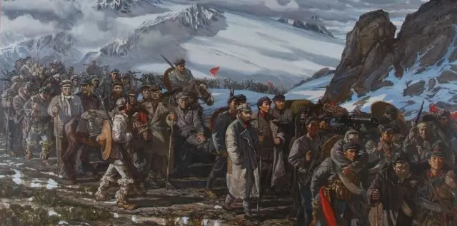 哪怕以皮帶充饑,戰(zhàn)士們?nèi)员3种锩鼧?lè)觀主義,終于挺進(jìn)陜北,勝利會(huì)師。