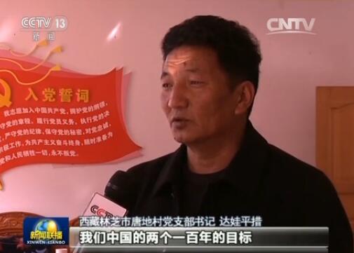 西藏林芝市唐地村黨支部書記達娃平措:一個國家和一個政黨,領導核心是至關重要的,我們有百倍的信心,以習近平同志為核心的黨中央領導下,我們中國的兩個一百年的目標,實現中華民族偉大復興的目標越來越近。
