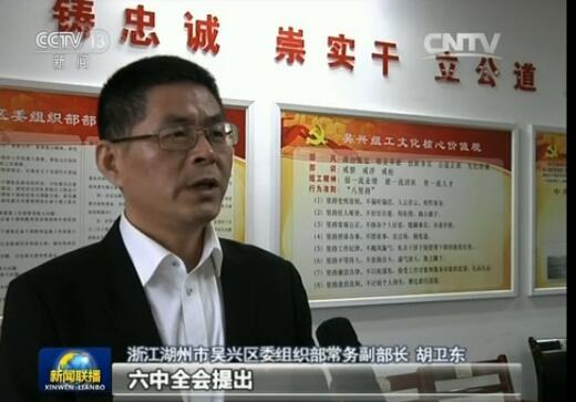 浙江省湖州市吳興區委組織部常務副部長胡衛東:六中全會提出,黨內不準搞拉拉扯扯、吹吹拍拍、阿諛奉承。所以,我們要始終堅持正確的選人用人導向,公道正派,堅持原則,讓跑官要官的、阿諛奉承的沒有機會、沒有市場,從而營造風清氣正的政治生態。