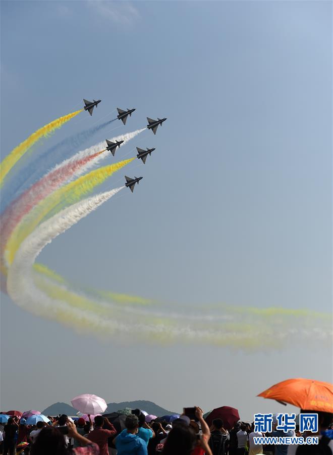 11月6日,觀眾在航展現(xiàn)場(chǎng)觀看飛行表演。當(dāng)日,在廣東珠海舉行的第十一屆中國國際航空航天博覽會(huì)落下帷幕。 新華社記者賈宇辰攝