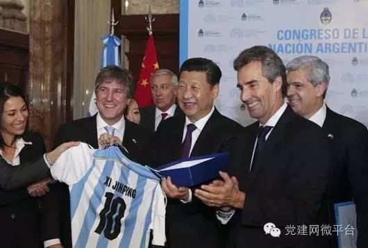 習近平說:“剛才眾議長先生問我是否喜歡足球,我說我非常喜歡足球。他也祝愿中國能夠早日舉辦一屆世界杯,這正是我的愿望。但是我們足球的發展,還希望同阿根廷加強交流合作,靠你們的幫助,提高我們的水平。