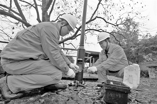 11月18日,國網(wǎng)寧波供電公司工作人員,來到余姚梁弄鎮(zhèn)讓賢村,對該村電網(wǎng)改造建設(shè)的最后一公里——5千伏高壓線開始移位作業(yè)。近年來,各地供電公司以多種方式推進(jìn)農(nóng)村電網(wǎng)建設(shè)精益化、智能化水平,保障了基層安全、穩(wěn)定用電。王幕賓攝
