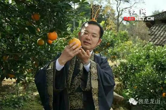 湘西州委常委、副州長(zhǎng)孫法軍身著秦風(fēng)古裝當(dāng)起了網(wǎng)絡(luò)主播,給力為里耶臍橙代言。