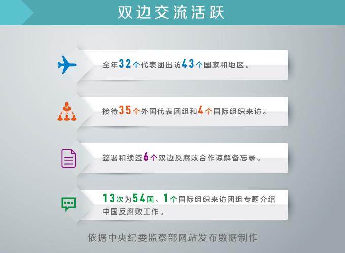 反腐敗國際合作的中國聲音越來越宏亮、中國故事越來越精彩。從2014年北京APEC峰會通過《北京反腐敗宣言》,到2016年G20杭州峰會通過《二十國集團反腐敗追逃追贓高級原則》《二十國集團2017-2018年反腐敗行動計劃》,在華設立G20反腐敗追逃追贓研究中心;從2016年組織32個代表團出訪43個國家和地區、接待35個外國代表團組和4個國際組織來訪,到簽署和續簽6個雙邊反腐敗合作諒解備忘錄、13次為54國1個國際組織來訪團組專題介紹中國反腐敗工作,中國的主張越來越被國際社會傾聽,拒絕腐敗分子入境、追繳和歸還腐敗資產越來越成為國際反腐敗合作的重要議題。