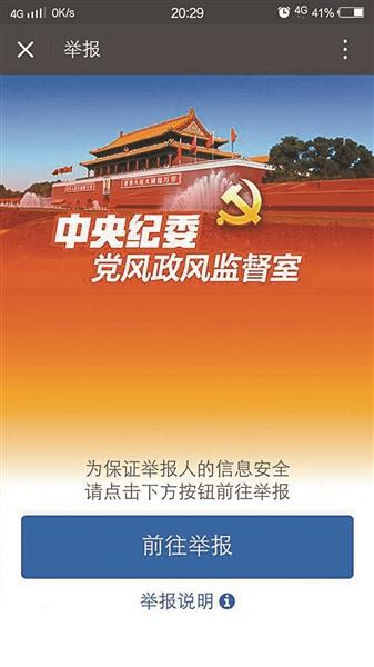 部分政務公號設置有舉報功能。例如在今年伊始進入公眾視野的“中央紀委監察部網站”微信公眾號,點擊其公號子欄目“四風舉報”按鈕,可進入“中央紀委黨風政風監督室”界面,實現“一鍵通”舉報。頁面右下角還開設了“微信大廳”,點擊可進入到一個匯總了近20省份紀委公號的界面,多省“打虎”動態都可實時關注到。