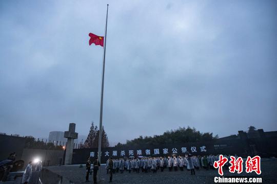原標題:南京大屠殺國家公祭現場:升國旗和下半旗儀式舉行