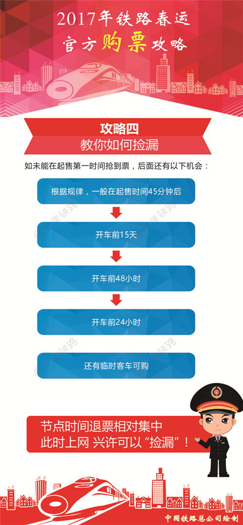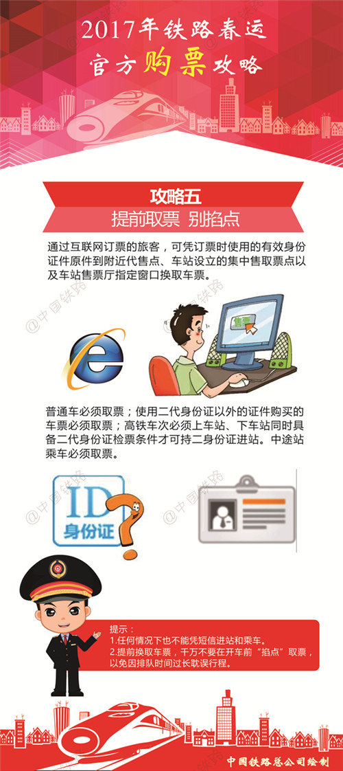 央視網消息:明天是12月15日,通過網絡和電話可以購買2017年1月13日,也就是2017年春運第一天的火車票了。要買票的童鞋不要急不要慌也不要緊張,以下是為大家準備的2017年鐵路春運官方購票攻略,注冊、購票、撿漏、取票,你想知道的東西都在這里,快來收藏吧。