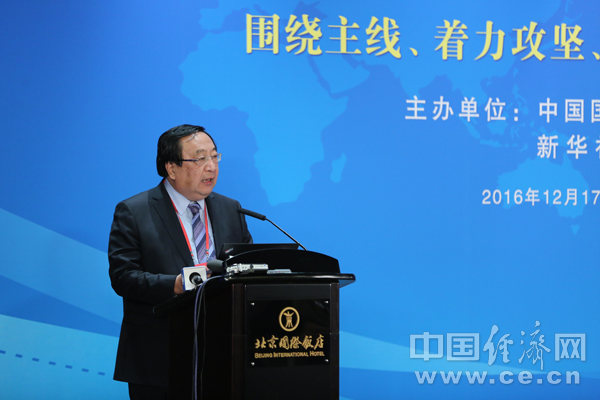 在2016—2017中國經濟年會上,中國國際經濟交流中心副理事長朱之鑫發表演講。孫宇攝