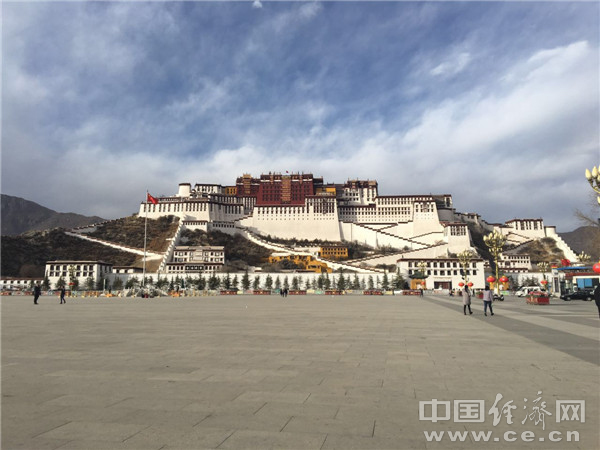 圖為冬日的布達(dá)拉宮,旅游淡季,布達(dá)拉宮廣場(chǎng)安靜恬謐。 中國(guó)經(jīng)濟(jì)網(wǎng)記者李婧 攝。
