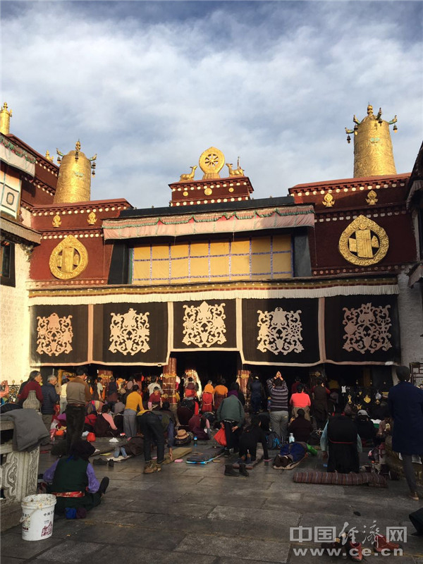 大昭寺前跪拜的信眾。 中國(guó)經(jīng)濟(jì)網(wǎng)記者李婧 攝。