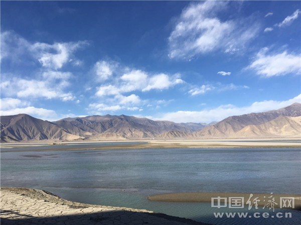 冬日藍(lán)天白云映襯下的雅魯藏布江。 中國(guó)經(jīng)濟(jì)網(wǎng)記者李婧 攝。