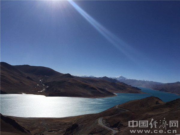 湖面海拔超過4400米的羊卓雍錯(cuò)湖。 中國(guó)經(jīng)濟(jì)網(wǎng)記者李婧 攝。