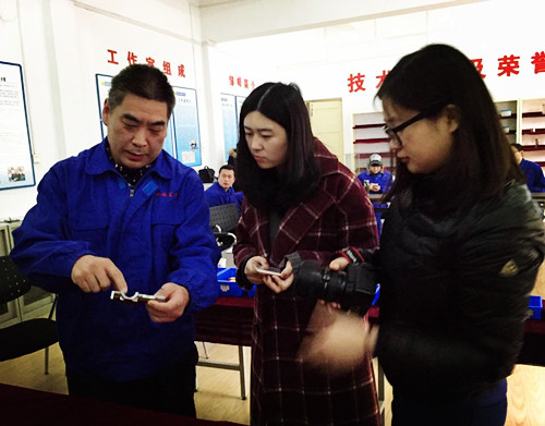 圖為記者正在對“匠人”鄒峰(左)進行采訪