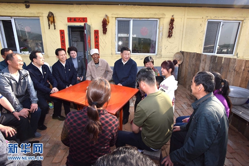 2016年5月23日,習近平在黑龍江省伊春市上甘嶺林業局溪水經營所林場職工劉養順家,同一家人及其鄰居們親切交談。