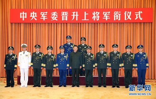 2016年7月29日,中央軍委晉升上將軍銜儀式在北京八一大樓隆重舉行。習近平向晉升上將軍銜的軍官頒發命令狀。