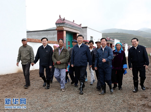2016年8月23日,習近平在青海省海東市互助土族自治縣五十鎮班彥村新村建設工地考察易地扶貧搬遷情況。