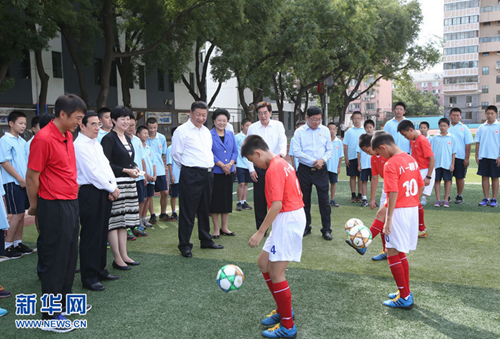 2016年9月9日,習近平在北京市八一學校體育場觀摩小學生足球訓練課。
